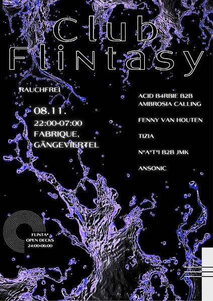 CLUB FLINTASY ✨ Die Fabrique im Gängeviertel wird zum FLINTASY-Playground! Hinter dem Event steht der FLINTA* Proberaum – ein offenes Projekt für FLINTA* DJs und Musikschaffende. Ein Ort zum Üben und Austauschen – ein Safe(r) Space für Sound und Community. Bei Club Flintasy wird gefeiert, getanzt und vernetzt! Euch erwartet ein vielseitiges Line-up aus unserem Proberaum-Kollektiv und ein zweiter Floor mit Open Decks (FLINTA* only) – für spontane Sets & kollektive Vibes. 💜 All genders welcome on the dancefloor – respect the space. Keine Menschenfeinde, kein diskriminierendes Verhalten – Achtsamkeit für alle, damit wir gemeinsam einen schönen Abend erleben können. 🌿 Damit euch beim Abtanzen nicht die Puste ausgeht sind beide Floors und Bars komplett rauchfrei. Bitte raucht nur im ausgewiesenen Außenbereich & achtet aufeinander – wir möchten einen inklusiven, achtsamen Ort schaffen. Und wie immer gilt das Pay-what-you-can/want-Prinzip. See you on the dancefloor! CLUB FLINTASY ✨ The Fabrique in Hamburg’s Gängeviertel turns into a FLINTASY playground! Hosted by the FLINTA* Proberaum – an open project and safe(r) space for FLINTA* DJs and music makers to connect, learn and create together. At Club Flintasy, we celebrate community through sound. Expect a diverse line-up from our collective and a second floor with Open Decks (FLINTA* only) for spontaneous sets, new encounters and shared energy. 💜 All genders welcome on the dancefloor – respect the space. No haters, no discriminatory behavior – mindfulness for everyone to enjoy the night together. 🌿 To keep you dancing without losing your breath, both floors and bars are completely smoke-free. We aim to create an inclusive and caring environment – please smoke only in the designated outdoor area and look out for each other. And as always, the pay-what-you-can/want principle applies. See you on the dancefloor!