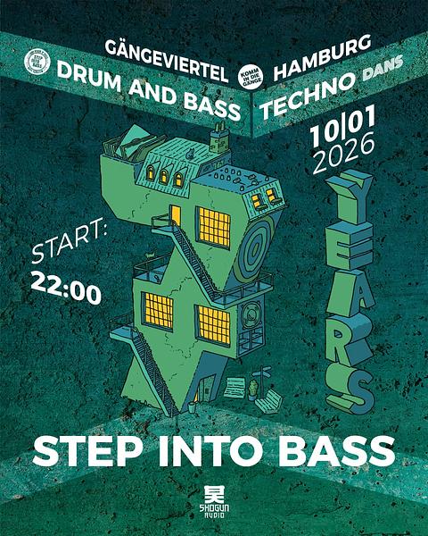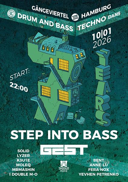 7 Years STEP INTO BASS ! Am 10. Januar 2026 feiern wir mit euch unseren 7. Crew-Geburtstag standesgemäß im geliebten Gängeviertel / Hamburg. Als Mainact begrüßen wir GEST vom Shogun Audio Label. Die STEP INTO BASS Crew wird das Line Up auf dem Drum and Bass Floor im Saal vervollständigen. Auf dem zweiten Floor im Keller könnt ihr euch auf technoide Beats freuen präsentiert vom DANS Kollektiv. [ Floor 1 - Drum and Bass ] **************************** ~ GEST (Shogun Audio) ~ https://soundcloud.com/gest_dnb https://www.instagram.com/gestdnb ~ LYZER ~ https://soundcloud.com/lyzerr https://www.instagram.com/lyzer.aiff ~ SOLID ~ https://soundcloud.com/solid_audio https://www.instagram.com/solid_audio ~ K3U1E ~ https://hearthis.at/k3u1e https://www.instagram.com/k3u1e ~ MOLEQ ~ https://soundcloud.com/moleqdnb https://www.instagram.com/moleq_dnb ~ MRMASHIN ~ https://soundcloud.com/mrmashin https://www.instagram.com/mrmashin ~ I DOUBLE M-O ~ https://linktr.ee/I_double_m_o https://www.instagram.com/i_double_m_o [ Floor 2 - Techno by DANS ] **************************** ~ BENT ~ https://soundcloud.com/bent-bent-218569110 https://www.instagram.com/bent_wav ~ ANNE-LU ~ https://soundcloud.com/anneelu https://www.instagram.com/annelu.wav ~ FERA NOX ~ https://linktr.ee/fera_nox https://www.instagram.com/fera_nox____official_____ ~ YEVHEN PETRENKO ~ https://soundcloud.com/yevhen-petrenko-dj https://www.instagram.com/yevhen.petrenko.dj/ **************************** Empfehlung am Einlass - diese geht wie immer an die Gast-DJs und ans Viertel. Uns begleitet bei der Veranstaltung den ganzen Abend hindurch ein Awareness-Team. Wenn ihr euch unwohl fühlt oder übergriffiges Verhalten erfahrt bzw. beobachtet, wendet euch gerne an die Awareness, Barmenschen, DJs oder Tür. Nazis, Rassismus, Antisemitismus, Sexismus, Homophobie und anderer Bullshit sind hier nicht erwünscht!!!
