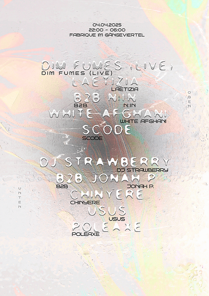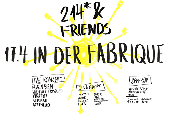 Am 17. April 2025 heißt es: Alle Wege führen in die Fabrique im Gängeviertel! Ab 20:00 Uhr erwartet euch ein abwechslungsreiches Line-Up. Hænsen, Whothefuckisplut0, Yinzent, Schmän und Actimell0 servieren euch feinste Live-Sounds zwischen Hip-Hop, Rap und Indie. Direkt im Anschluss geht es auf beiden Floors weiter mit pulsierenden Dj-Sets von Ærik, Achtzig, Jibs, Sveric, FbTB (B2B), Celect, JD[EX], und N3xt B2B DJ Blauschimmelkäse. Wer tanzt, sündigt nicht! Kommt vorbei, wir freuen uns auf euch! <3