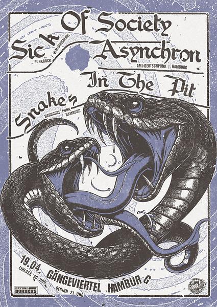 30 Jahre Sick of Society!!! Das muss gefeiert werden Freut euch auf: Sick of Society - Punkrock aus Ulm https://sickofsociety.jimdoweb.com/ Asynchron - Skatepunk aus Hamburg ' https://asynchron.bandcamp.com/ Snakes in the Pit - Hardcore/Punk aus Hamburg https://snakesinthepit.bandcamp.com/ Einlass: 20:00 Uhr Beginn: 21:00 Uhr