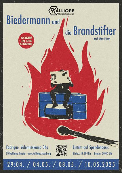 "Biedermann und die Brandstifter" – Ein gutbürgerliches Leben gerät ins Wanken, als zwei ungebetene Gäste sich einschleichen. Max Frisch zeigt, wie faschistische Rhetorik funktioniert – kommentiert von zwei Feuerwehrmännern. Während Herr Biedermann zwischen Angst und Anpassung schwankt, bleibt seine Frau eine rätselhafte Figur. Wer trägt Verantwortung? Wo liegen die Grenzen der Gastfreundschaft? In einer zeitlosen, kollektiv entwickelten Inszenierung hinterfragen wir nicht nur das Stück, sondern auch seinen Autor – und werfen einen kritischen Blick auf Mechanismen der Manipulation und gesellschaftliche Verantwortung.