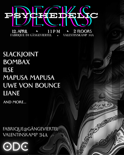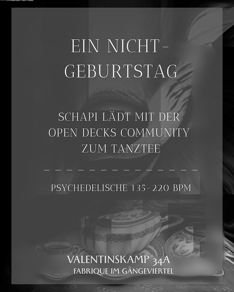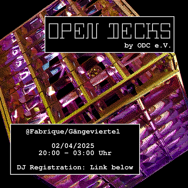 Neuer Monat, neue Anordnung der Quacksalber. Es ist wieder Zeit für: OPEN DECKS im Gängeviertel. Wie jeden Monat gibts auf Rezept des regelmäßige Ausdauertraining für feierwütige Tanzmäus*innen zu Techno bis Trance & allem dazwischen. 1. Mittwoch // 02.04. // 20-03 Uhr // @ Fabrique im Gängeviertel, Valentinskamp 34a See you there . dance with us and have a CENTER SHOT. Neben unserem Solidrink haben wir auch wieder unsere Teebar dabei. Love, eure Open Decks Community e.V. ############## ############## Komm in die GÄNGE und MISCH DICH EIN! Wanna DJ?! Wir haben im Sinne der Open Decks noch ein paar Slots für euch frei. Schreib uns dafür auf INSTAGRAM (@odysseehh). Den Timetable gibt es im Laufe des Abends, unsere Djs bekommen früher Bescheid. Was wir dafür von dir brauchen: 1. Name/Alias (für Table): 2. Style + BPM(-Range): 3. schon bei uns gespielt?/~ angemeldet aber nicht spielen können?: 4. FLINTA*?: 5. Erfahrung: (Beginner - Advanced - Profi) 6. b2b-Interesse/-Wünsche?: Wir können Anfänger*innen gerne auch erfahrenere DJs zur Seite stellen/vermitteln! Sollten zeitliche Einschränkungen bestehen, bitte ebenfalls angeben. (keine Wunschslots!) Disclaimer: Wie immer gilt - keine Menschenfeinde, kein diskriminierendes Verhalten und Achtsamkeitsgebot für Jedermensch, damit wir gemeinsam einen nicen Abend gestalten können. x3 Generelles Pay-what-you-can/want-Prinzip.